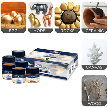 6 Vibrant Colors & Rich Pigment: The studio acrylic pearlescent paint set comes in unique eye-catching vibrant pearlescent colors (Copper, Charcoal, 4k Gold, Bronze, Silver, Coffee) and offers vivid colors and better selections to bring your artwork to life.